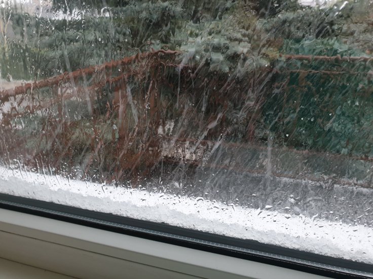 Dešimtmetis D žiūri pro langą, kaip gegužės pradžios dangus krušte kruša krušą skersai visą horizontą ir sako: